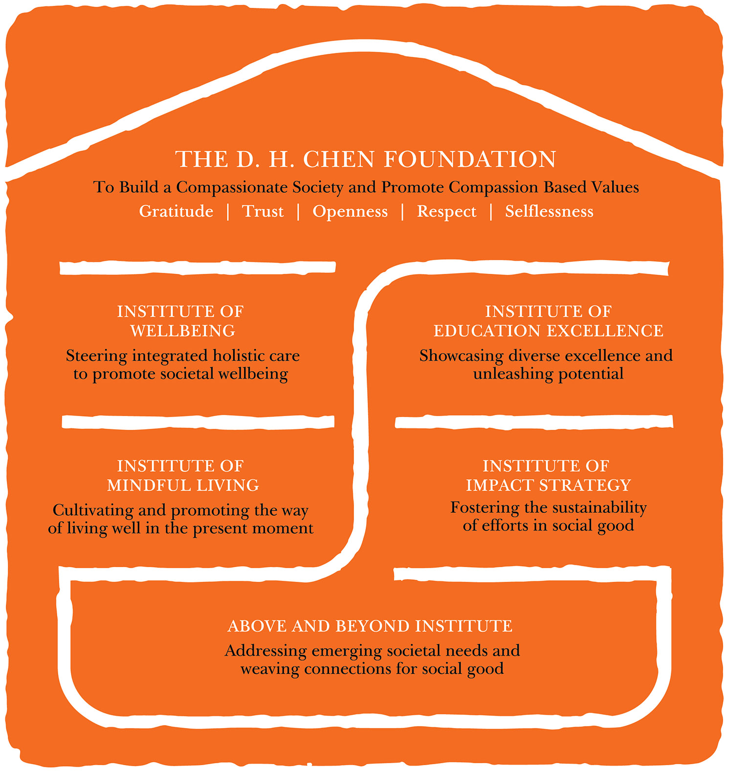 Aspiring to build a compassionate society, we are driven by the values of Gratitude, Trust, Openness, Respect and Selflessness, and we promote them through our work: